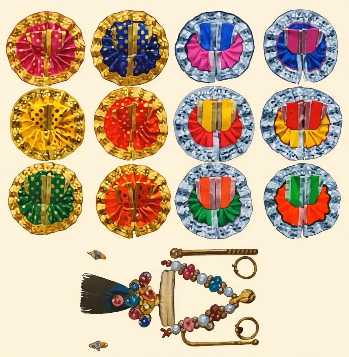 - 2–3 mor-mukuts (peacock feather crowns)